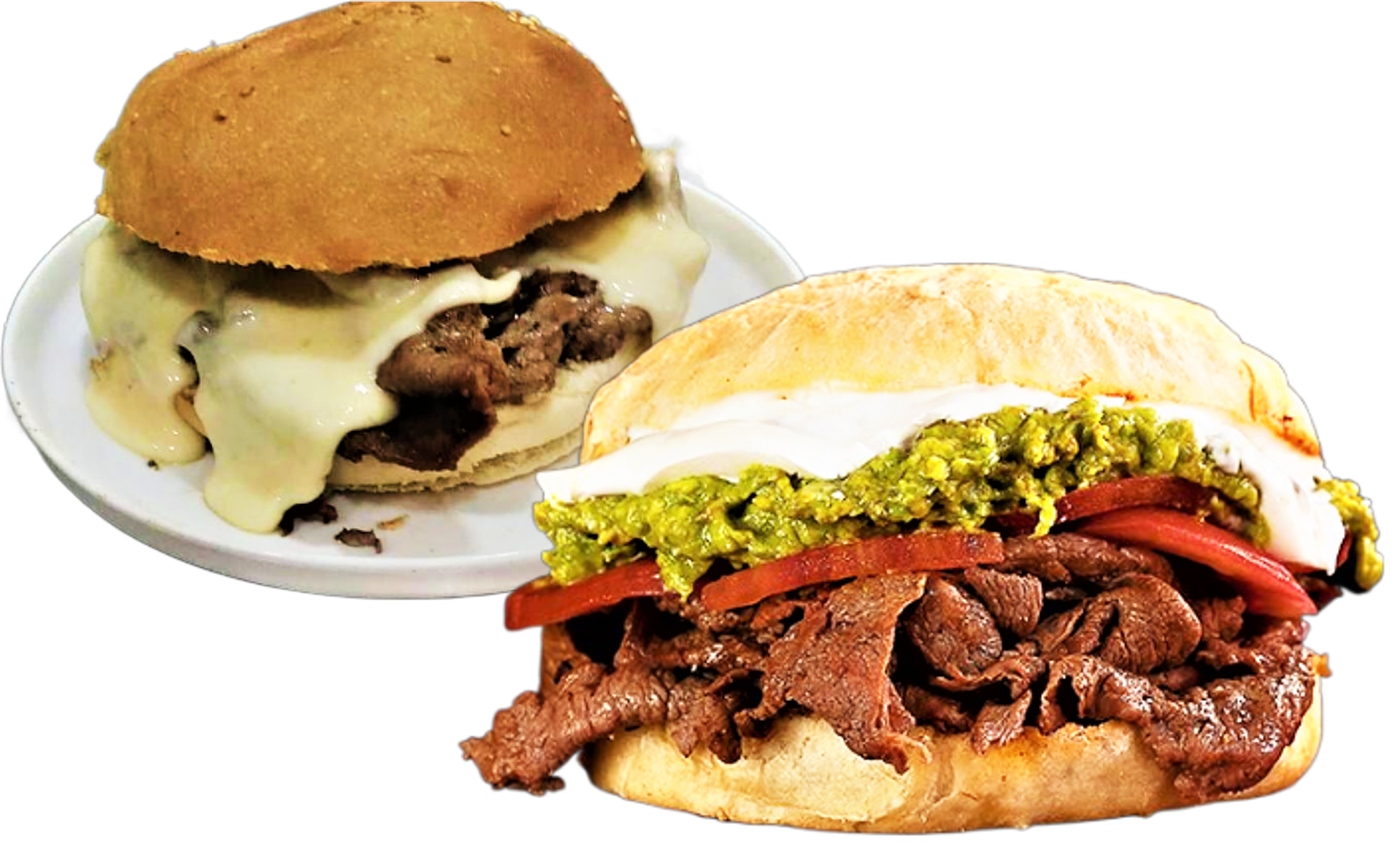 carne, pollo, chicharrón, cebolla, maíz, salsas